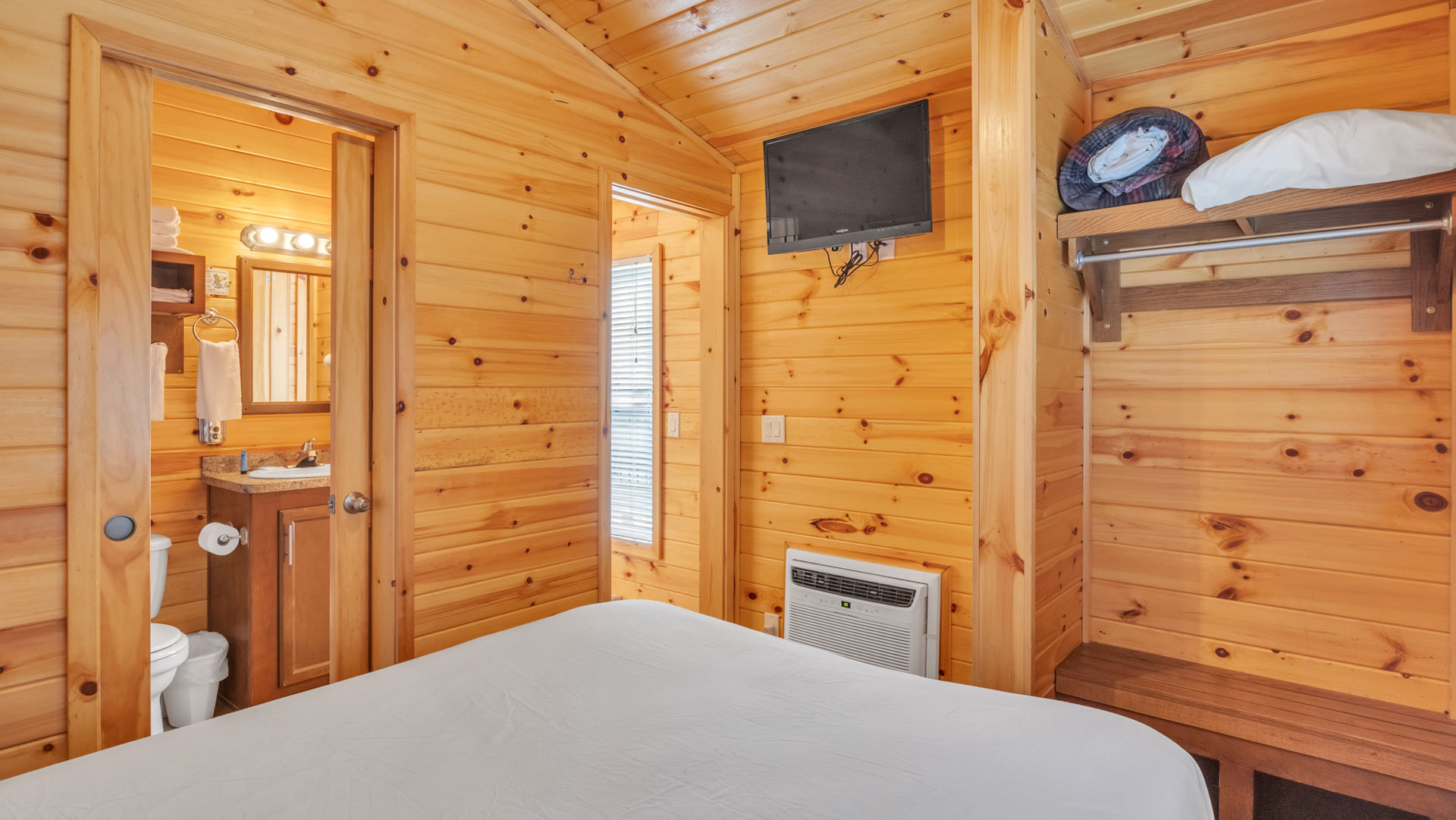 Guests also have access to all communal areas, including a small fishing pond, a swimming pool (seasonal), a pizza shop, a gift shop, and a playground.